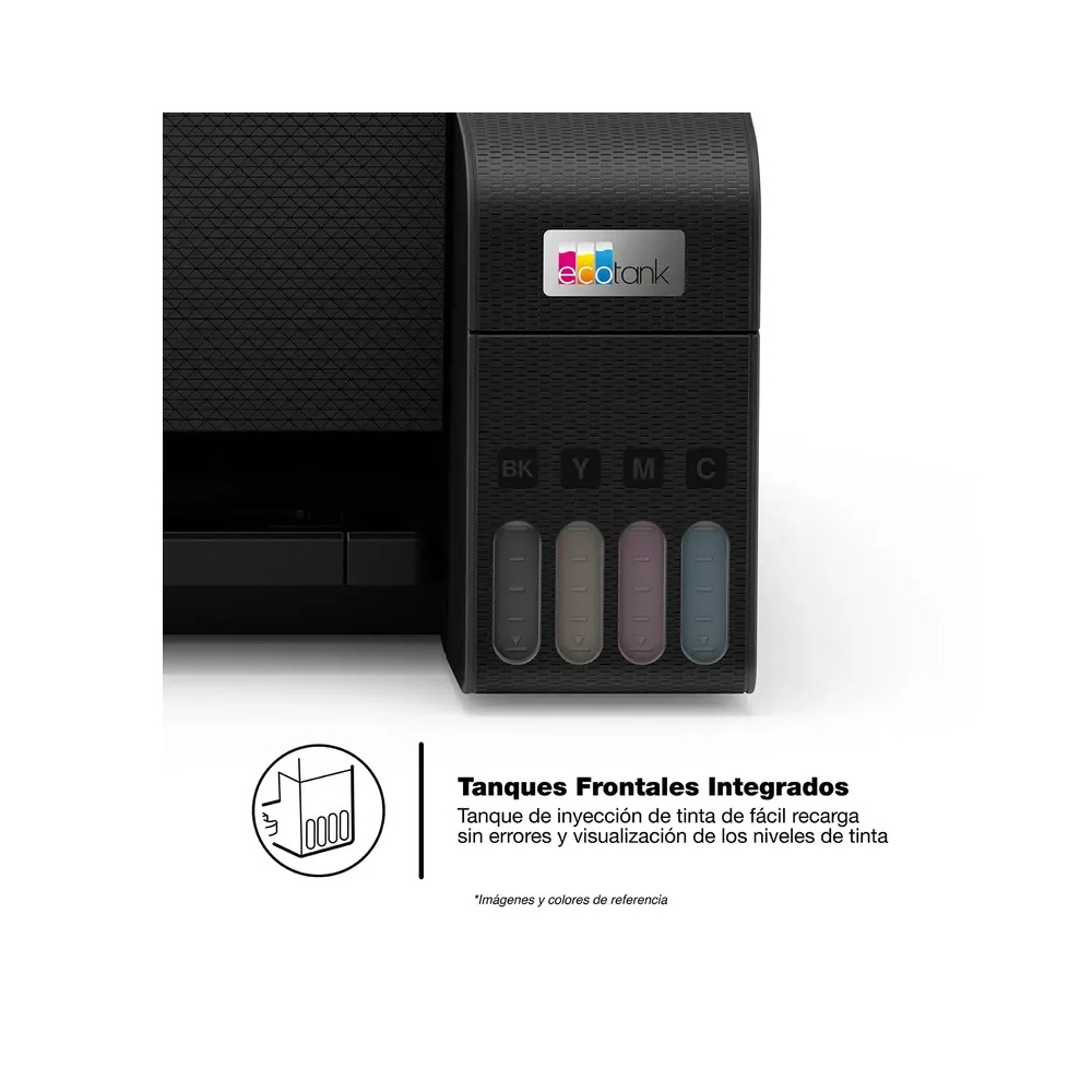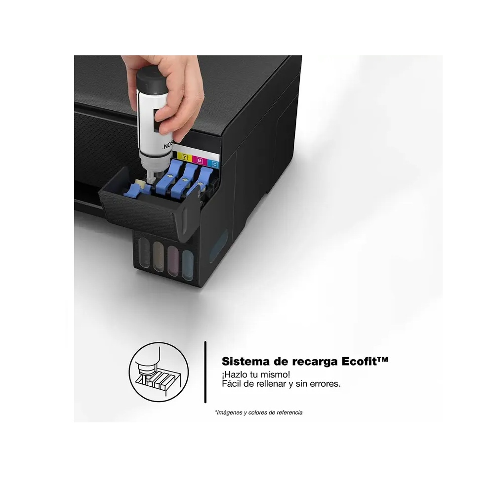 Esta impresora ofrece a las familias, estudiantes y profesionales un costo de impresión ultra bajo, que permite imprimir hasta 4.500 páginas en negro o 7.500 páginas a color con cada juego de botellas de repuesto3. La L3210 ofrece total confiabilidad gracias a la tecnología Heat-Free de Epson, además de una experiencia de recarga fácil, limpia y sin errores con la tecnología EcoFitTM, y un diseño de tanque frontal súper compacto que ocupa poco espacio y permite verificar fácilmente los niveles de tinta.