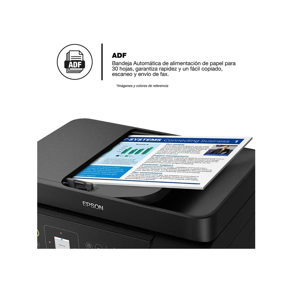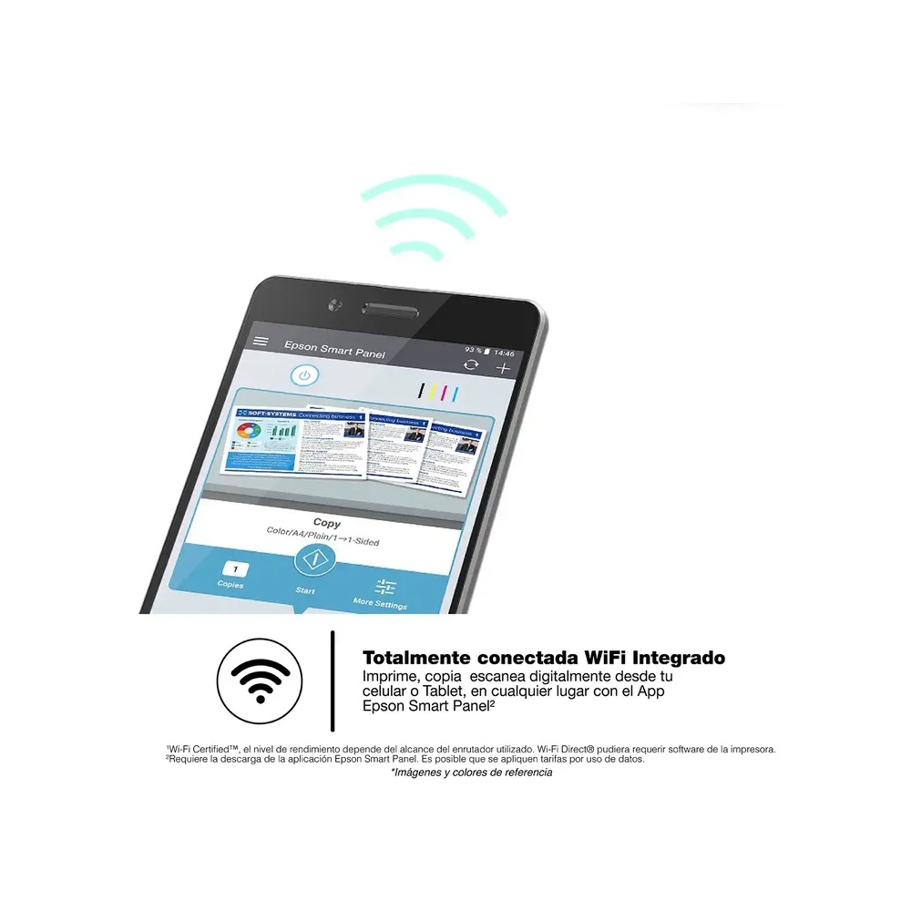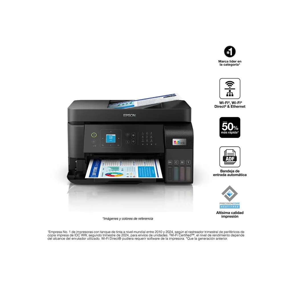 La EcoTank L5590 va más allá de la confiabilidad y eficiencia ofrece velocidades de impresión 50% más rápidas sin sacrificar calidad de impresión con la tecnología Heat-Free PrecisionCore. Lleve consigo toda la conveniencia y productividad a cualquier lugar con Epson Smart Panel para imprimir y sacar provecho de la productividad de su EcoTank desde su dispositivo móvil. Únase a los millones de usuarios que han seleccionado Epson como su socio de negocios y haga más en menos tiempo con la solución 100% sin cartuchos para que pueda imprimir todo lo que necesita con toda la tranquilidad y conveniencia que Epson ofrece.