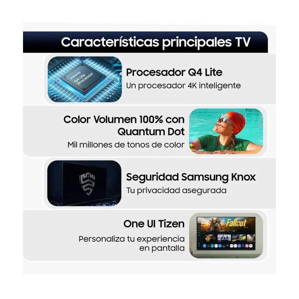 El procesador inteligente de Samsung optimiza la imagen y el sonido según las condiciones de visualización. El potente escalado 4K garantiza que obtengas una resolución 4K para el contenido que te encanta.